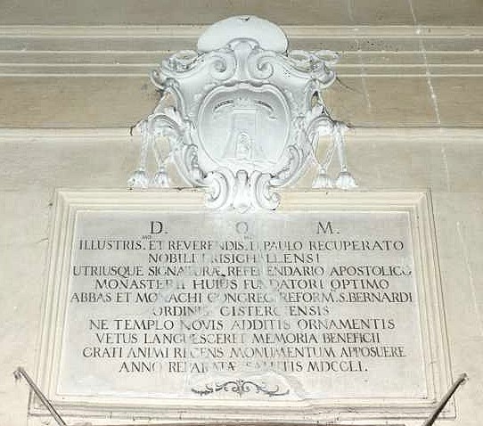 La documentazione di un importante evento è riportata nella lapide posta sopra la porta d’ingresso della Chiesa. Nella lapide è riportato l’anno 1750 cui risale l’esecuzione dell’apparato decorativo, affidato totalmente ad Antonio Fanzaresi, col fine di adeguare la struttura al rango di Chiesa abbaziale.