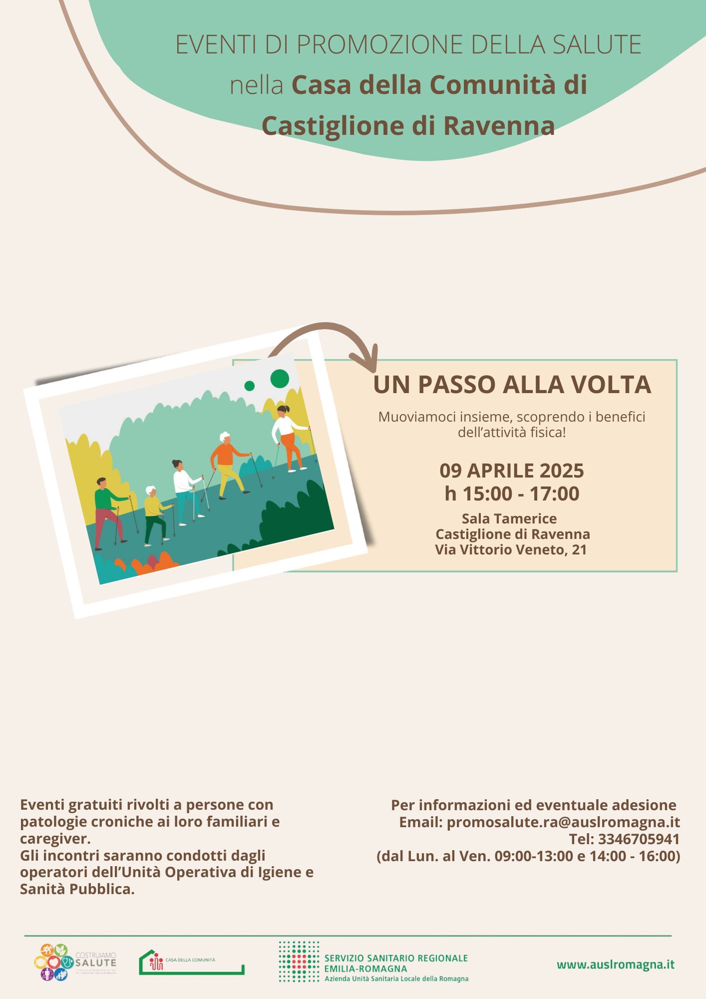 ContattiTel 3346705941 Dal Lunedì al Venerdì 09:00-13:00 e 14:00-16:00E-mail promosalute.ra@auslromagna.it Contatti interni