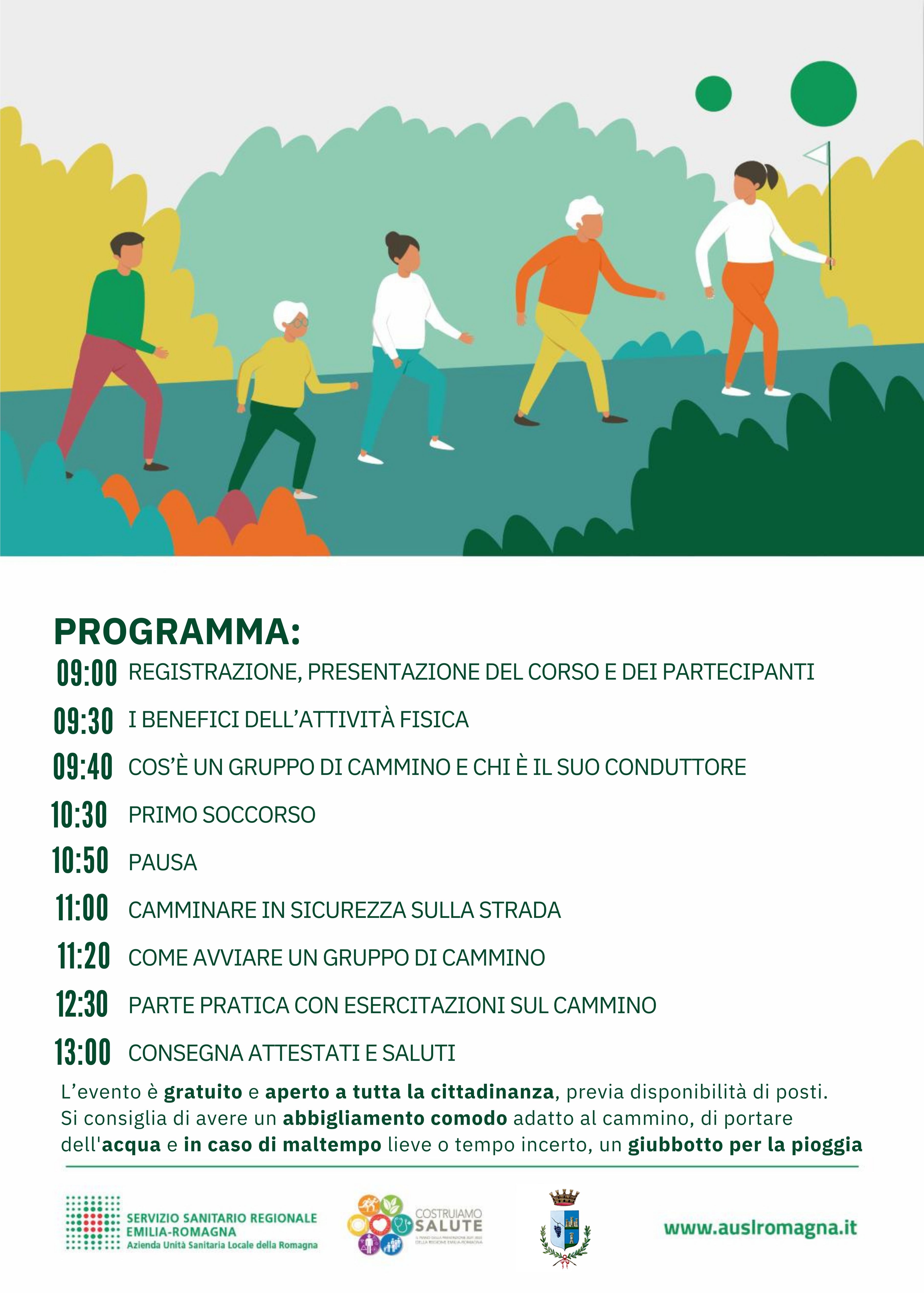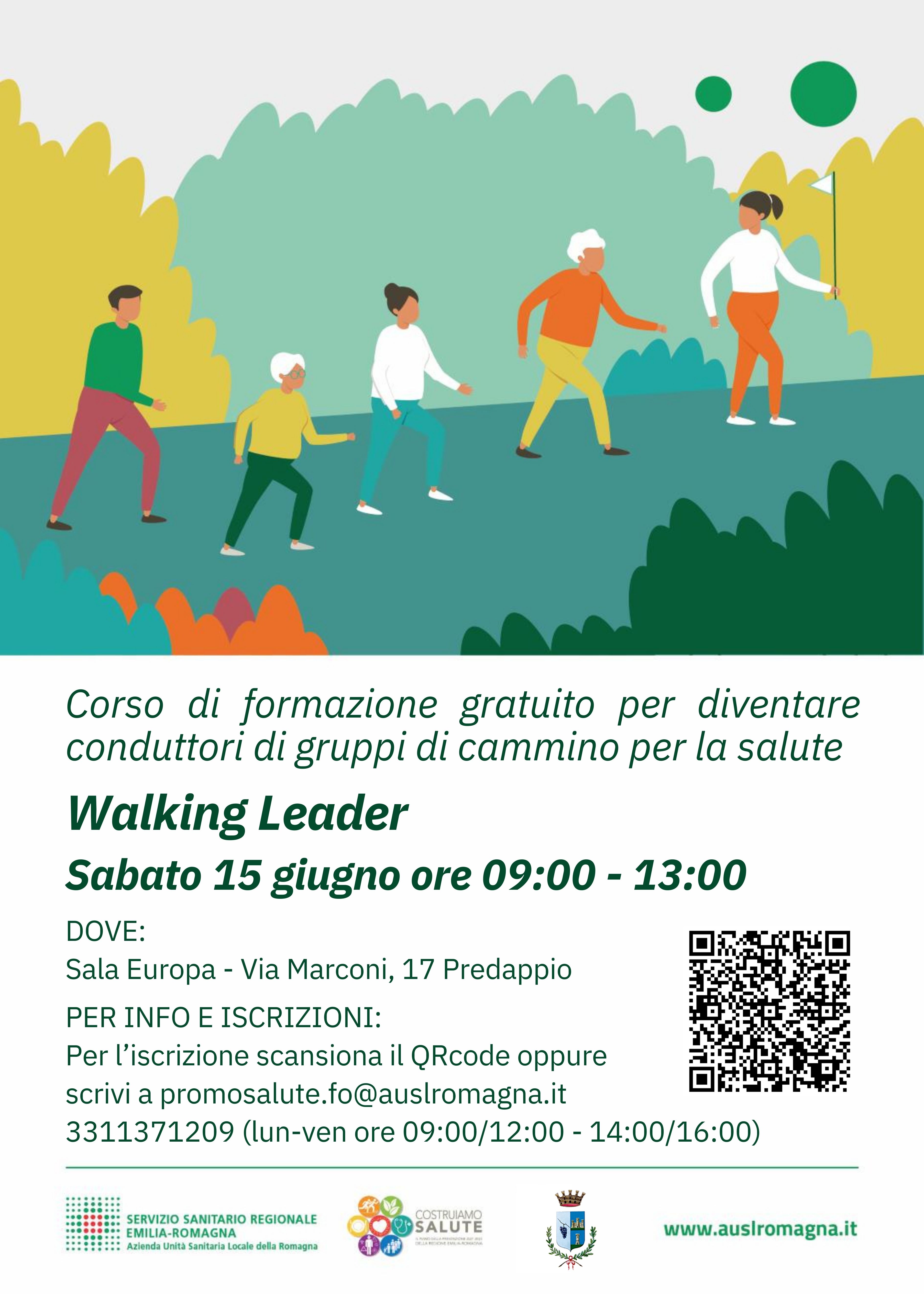 Il Dipartimento di Sanità Pubblica della AUSL Romagna ambito di Forlì - Cesena, in collaborazione con il Servizio di Medicina dello Sport e il Dipartimento di Cure Primarie, con il patrocinio del Comune di Predappio, organizza un corso di formazione gratuito per diventare “Walking Leader”, ovvero un conduttore di Gruppi di Cammino per la salute.