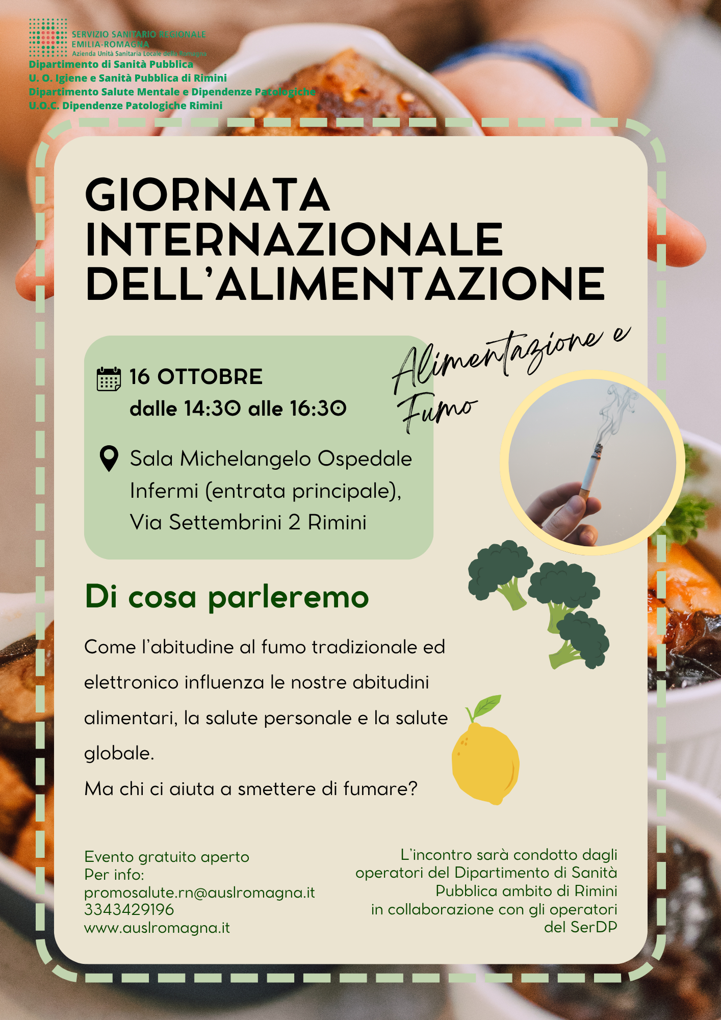 Incontro aperto alla popolazione in cui affronteremo il tema di come l'abitudine al fumo influenza le nostre abitudini alimentari, la salute personale e globale