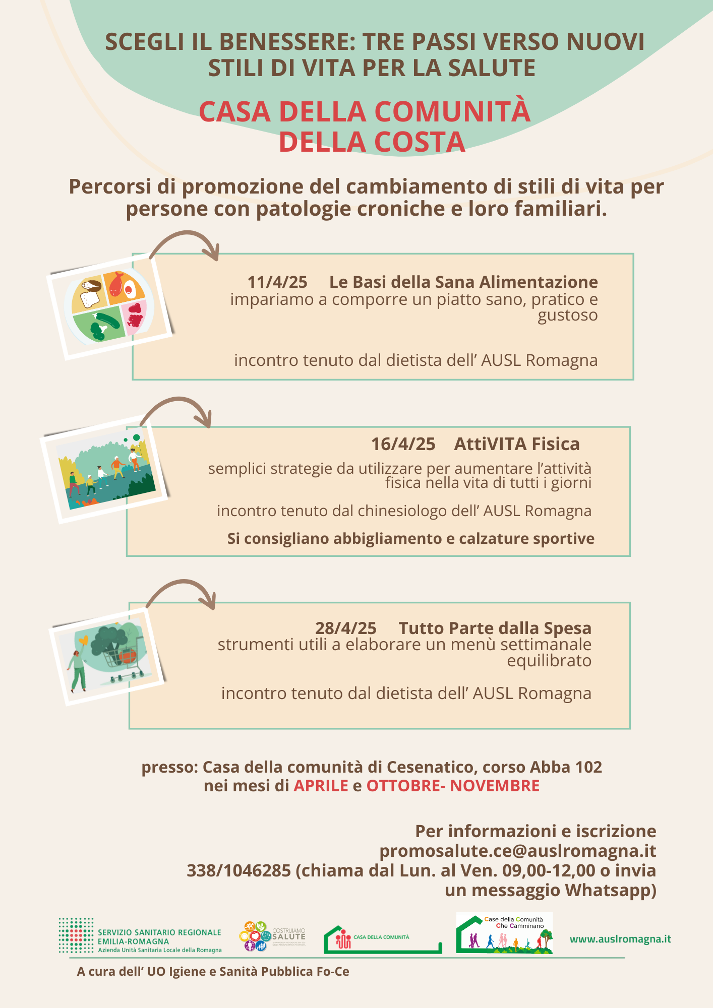 Scegli il benessere: tre passi verso nuovi stili di vita per la salute. Per informazioni e iscrizione promosalute.ce@auslromagna.it 3381046285