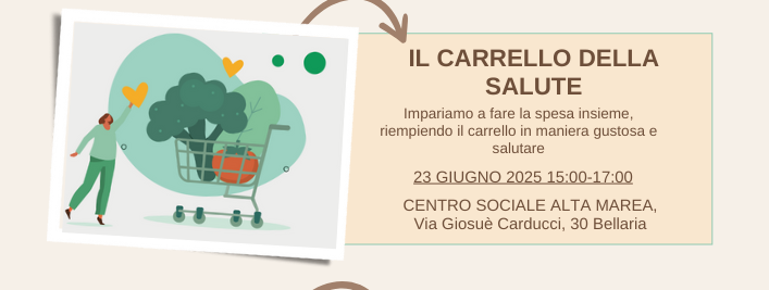 Lunedì 23 giugno, dalle ore 15 alle 17, è in programma a Bellaria, al Centro Sociale Alta Marea (via Carducci 30), l’evento “Il Carrello della salute”, un incontro per imparare a fare la spesa riempiendo il carrello in maniera gustosa e salutare. A condurlo la dietista insieme agli operatori del Dipartimento di Sanità Pubblica, che guideranno i partecipanti lungo la scoperta dei macronutrienti, delle etichette e la composizione di un piatto bilanciato, fornendo preziosi consigli per costruire in autonomia il proprio menu settimanale all’insegna di una corretta alimentazione.
