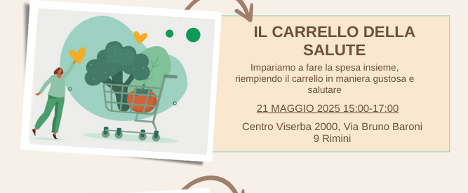 Mercoledì 21 maggio, dalle ore 15 alle 17, è in programma a Viserba di Rimini, al Centro Viserba 2000 (via Bruno Baroni 9), l’evento “Il Carrello della salute”, un incontro per imparare a fare la spesa riempiendo il carrello in maniera gustosa e salutare. A condurlo la dietista insieme agli operatori del Dipartimento di Sanità Pubblica, che daranno consigli per costruire in autonomia il proprio menu settimanale all’insegna di una corretta alimentazione.