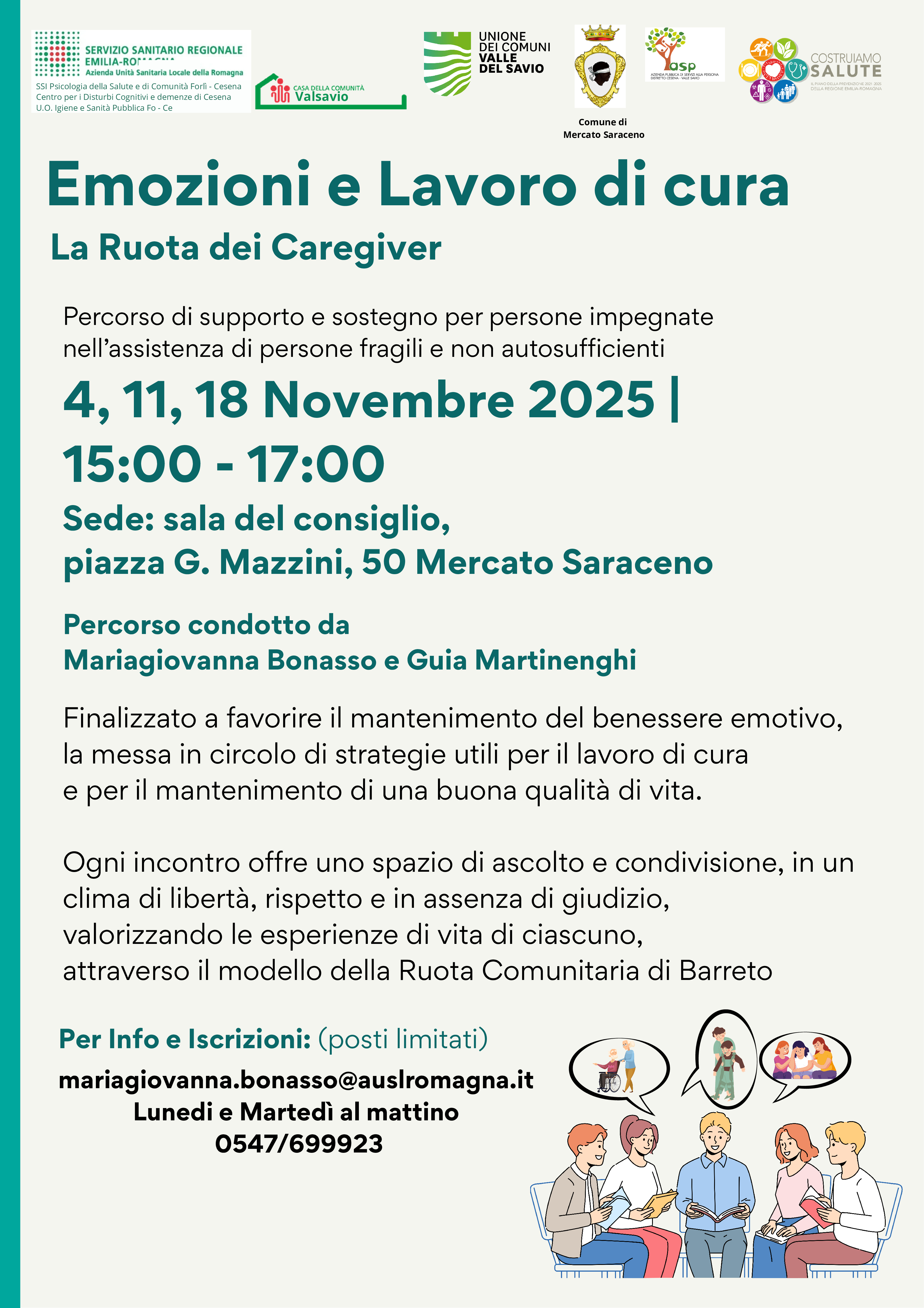 Emozioni e lavoro di cura: è in partenza a Mercato Saraceno un nuovo percorso di promozione del benessere psicologico rivolto a chi assiste e si prende cura di un familiare in condizioni di non autosufficienza.