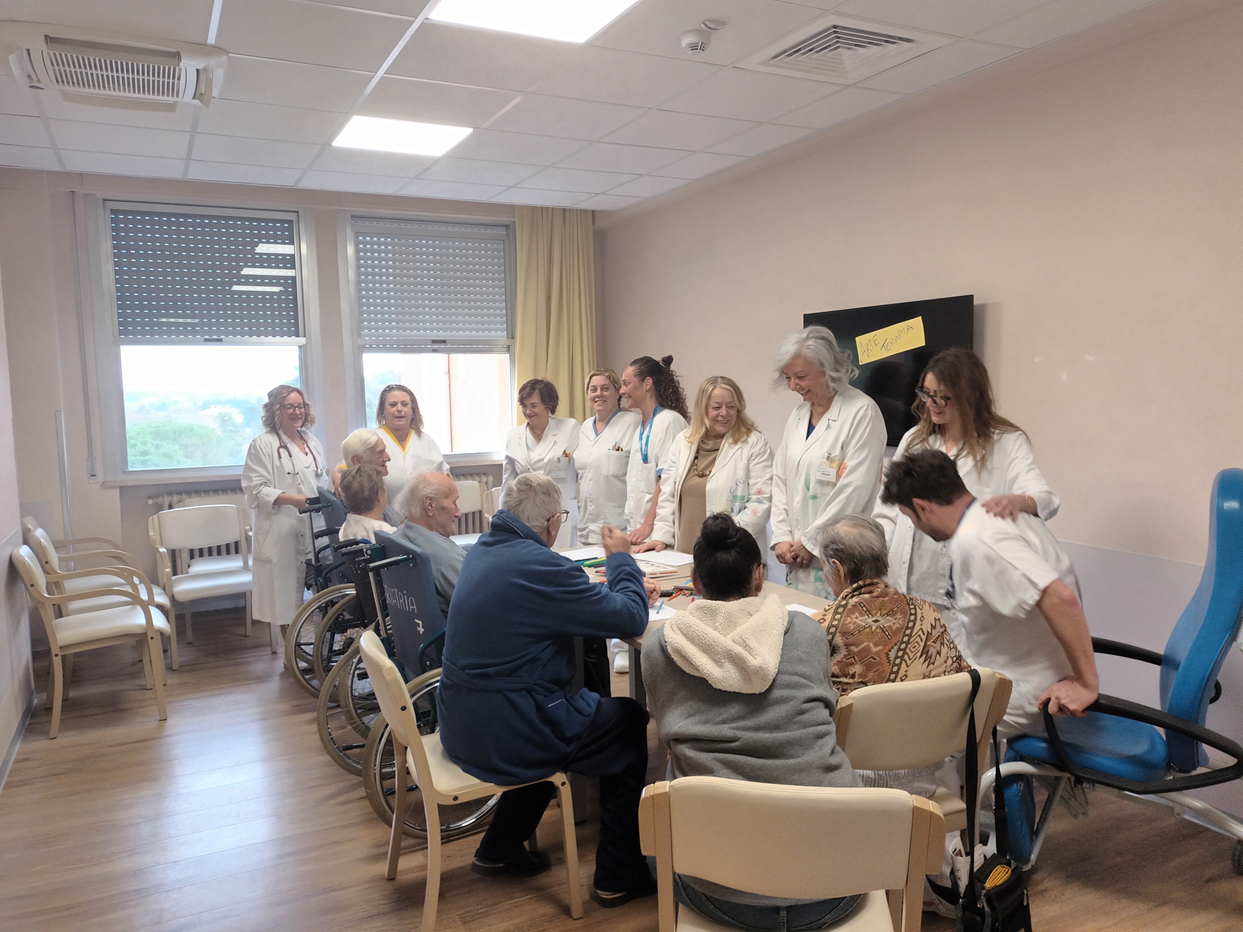 L’attività di arteterapia in Geriatria, Lungodegenza e Nefrologia si svolge due pomeriggi a settimana, con sedute sia individuali che di gruppo. Duranti gli incontri il paziente viene invitato ad esprimere la propria identità e la natura del disagio legato all’esperienza di malattia e di ospedalizzazione attraverso il processo creativo guidato dalle arte-terapeute dell’Associazione ArtinCounselling Jessica Neri, Monia Brighi e Stefana Ugolini.
