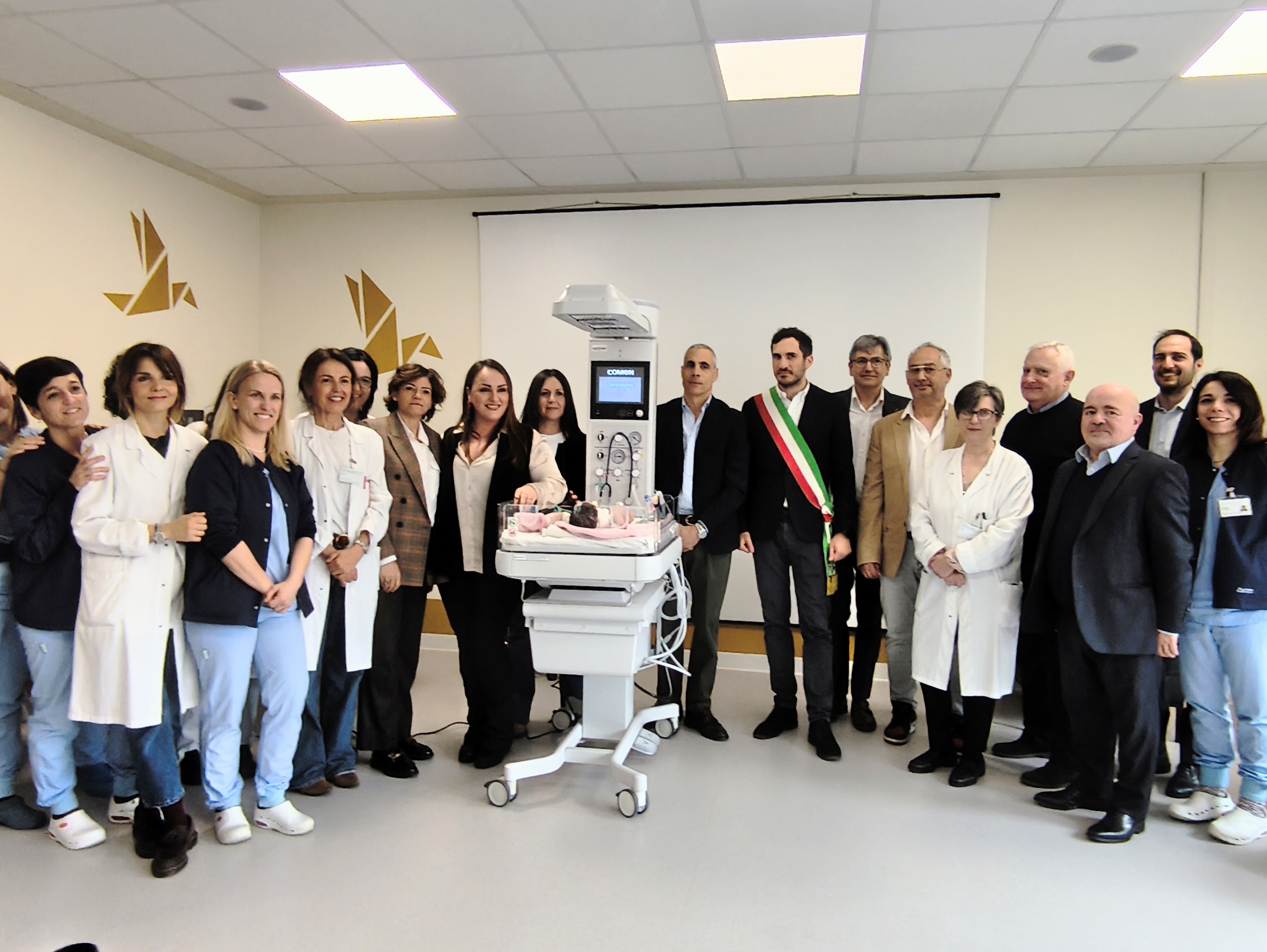 Alla cerimonia erano presenti il Sindaco di Cesena Enzo Lattuca, la Direttrice del Presidio ospedaliero Marisa Bagnoli, il Direttore della Pediatria e terapia intensiva neonatale e pediatrica Marcello Stella, la Direttrice dell’Ostetricia e Ginecologia Gloria Giacomini, il Direttore della Fisica Medica e Ingegneria Clinica Stefano Sanniti, la Direttrice dell’UO Accoglienza, Urp e Fundraising Elisabetta Montesi, la coordinatrice dell’Ufficio Fundraising Manuela Guido, la Coordinatrice della Pediatria Alice Rasi, la Coordinatrice dell’Ostetricia e Ginecologia Gilda Sottile, il Presidente Denis Amadori e il segretario Stefano Paolucci dell’Associazione “Il Germoglio” e la comunication manager della Fondazione Amadori Ersilia Soccio.