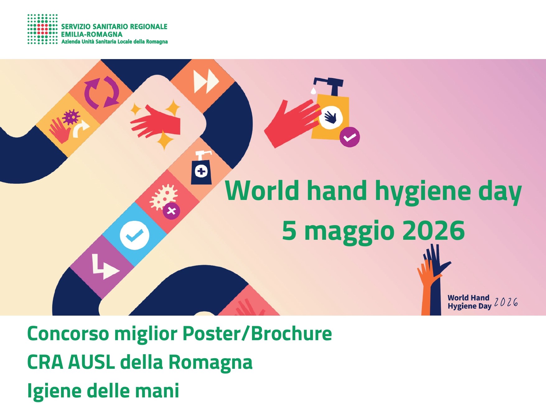 Sono gli obiettivi con cui, in occasione della Giornata Mondiale dell’Igiene delle Mani che si celebra ogni anno il 5 maggio, la Struttura di Programma aziendale rischio infettivo e stewardship antimicrobica lancia un’iniziativa che coinvolge attivamente tutti gli operatori e gli ospiti delle Case Residenza per Anziani accreditate dei quattro ambiti territoriali dell’Ausl Romagna. Si tratta del ‘Concorso Miglior Poster/Brochure CRA Ausl Romagna Igiene delle mani’, rivolto alle equipe di professionisti multidisciplinari che lavorano in una delle CRA accreditate e finalizzato appunto a promuovere la realizzazione di materiale informativo (poster, brochure, altri strumenti comunicativi) da parte degli operatori, anche con il coinvolgimento degli ospiti delle strutture.
