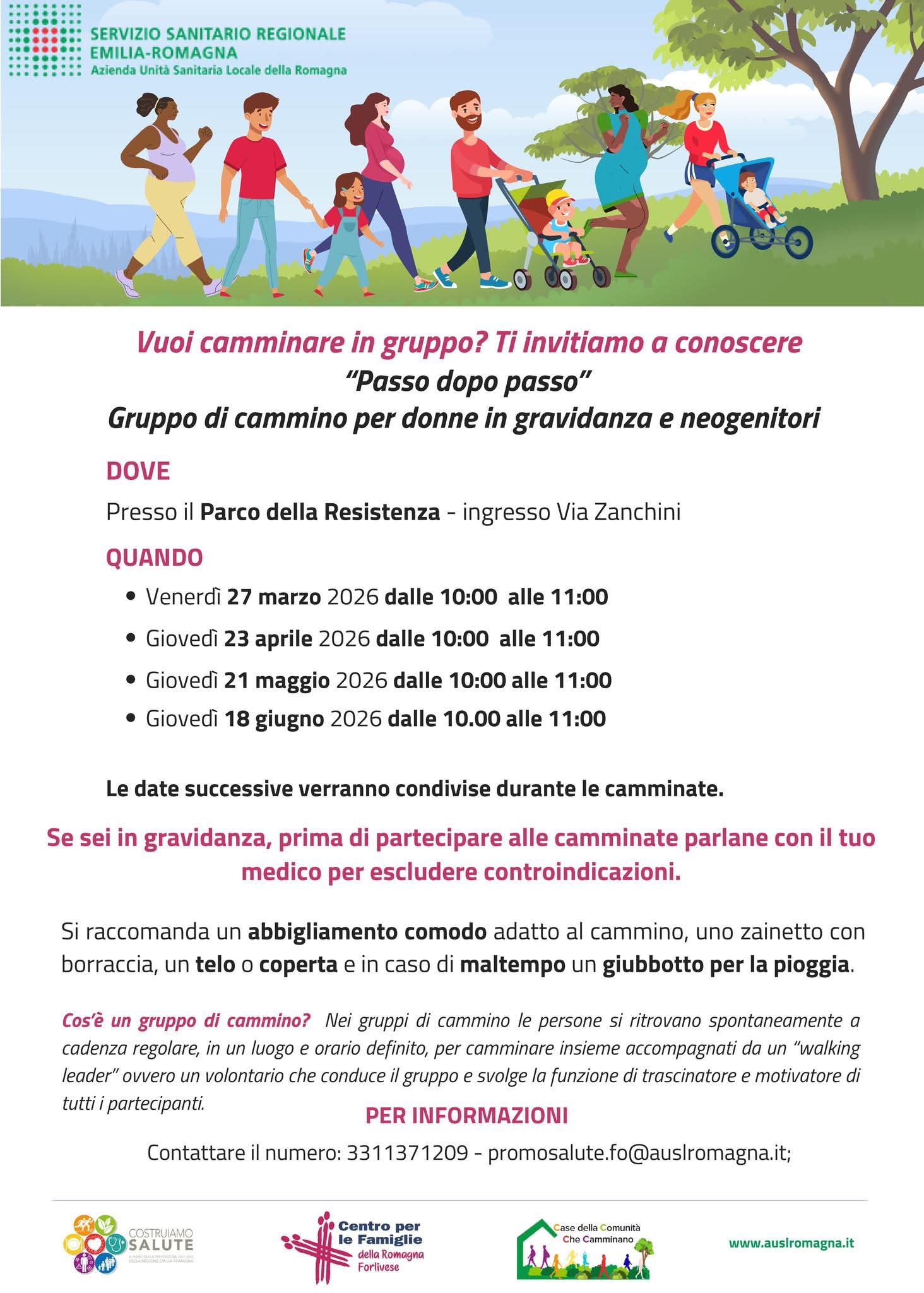 Vuoi camminare in gruppo? Ti invitiamo a conoscere "Passo dopo passo" Gruppo di cammino per donne in gravidanza e neogenitori dell'Ausl Romagna