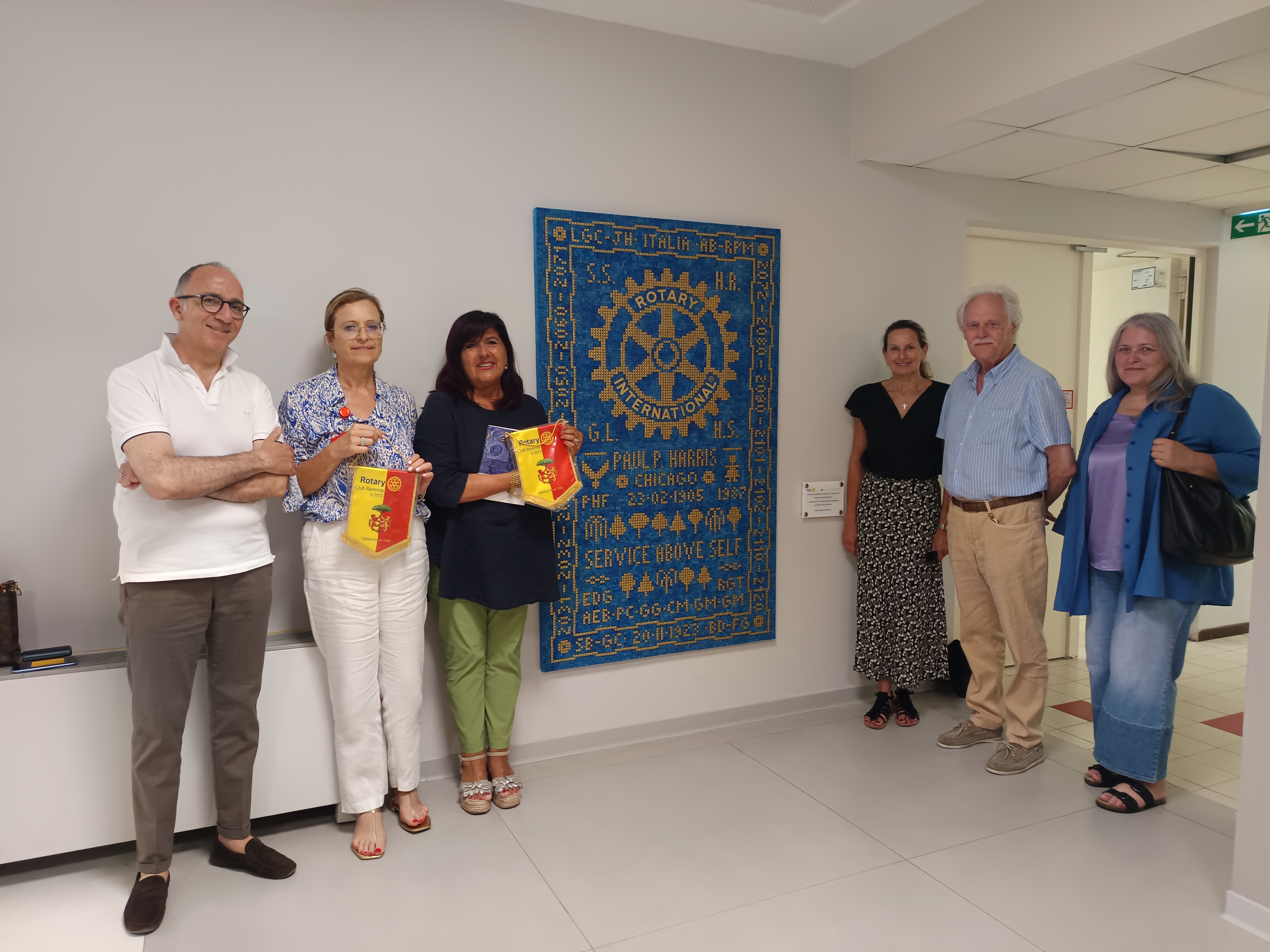 Nella foto in alto: Roberta Mazzoni, direttrice del Distretto sociosanitario di Ravenna, Cervia e Russi; Rita Amadori, artista che ha donato l'opera; Paola Babini, presidente del Rotary Club Ravenna 2072 e Direttrice dell’Accademia di Belle Arti; Roberta Casadei Monti, prefetto Rotary Club Ravenna 2072; Giovanni Scapini, socio Rotary Club e curatore del Premio Renato Darchini, per i migliori mosaici realizzati dagli allievi dell’Accademia di Belle Arti; Giorgio Bruno, medico Ausl Romagna e socio Rotary Club