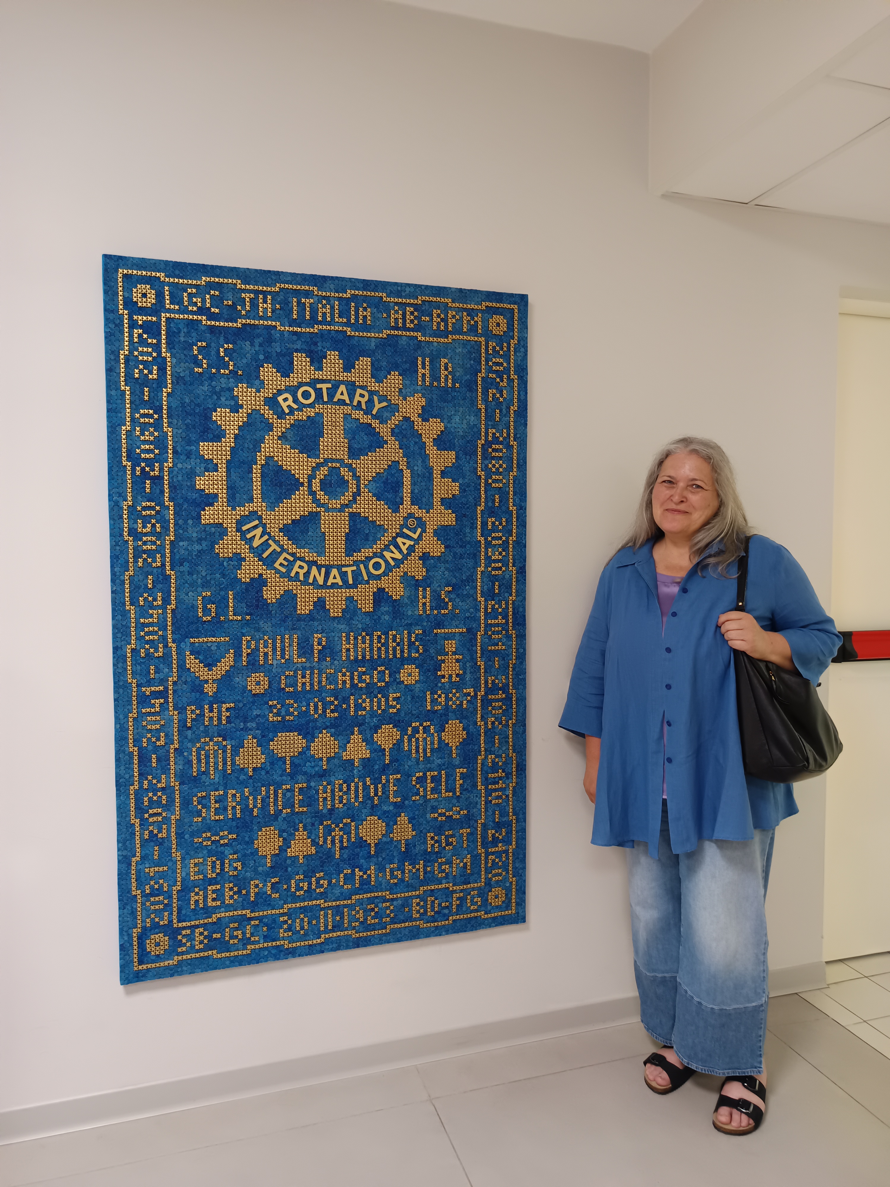 Un grande “tappeto di pietra”, in marmo botticino blu e oro, le cui tessere sono disposte a simulare una tessitura a “punto croce”. È il mosaico donato dal Rotary Club Ravenna 2072 all’Ausl della Romagna. L’opera è stata realizzata da Rita Amadori, allieva dell’Accademia di Belle Arti Statale di Ravenna, ed è stato istallato permanentemente nell’atrio del CMP – Centro di Medicina e Prevenzione di Ravenna.