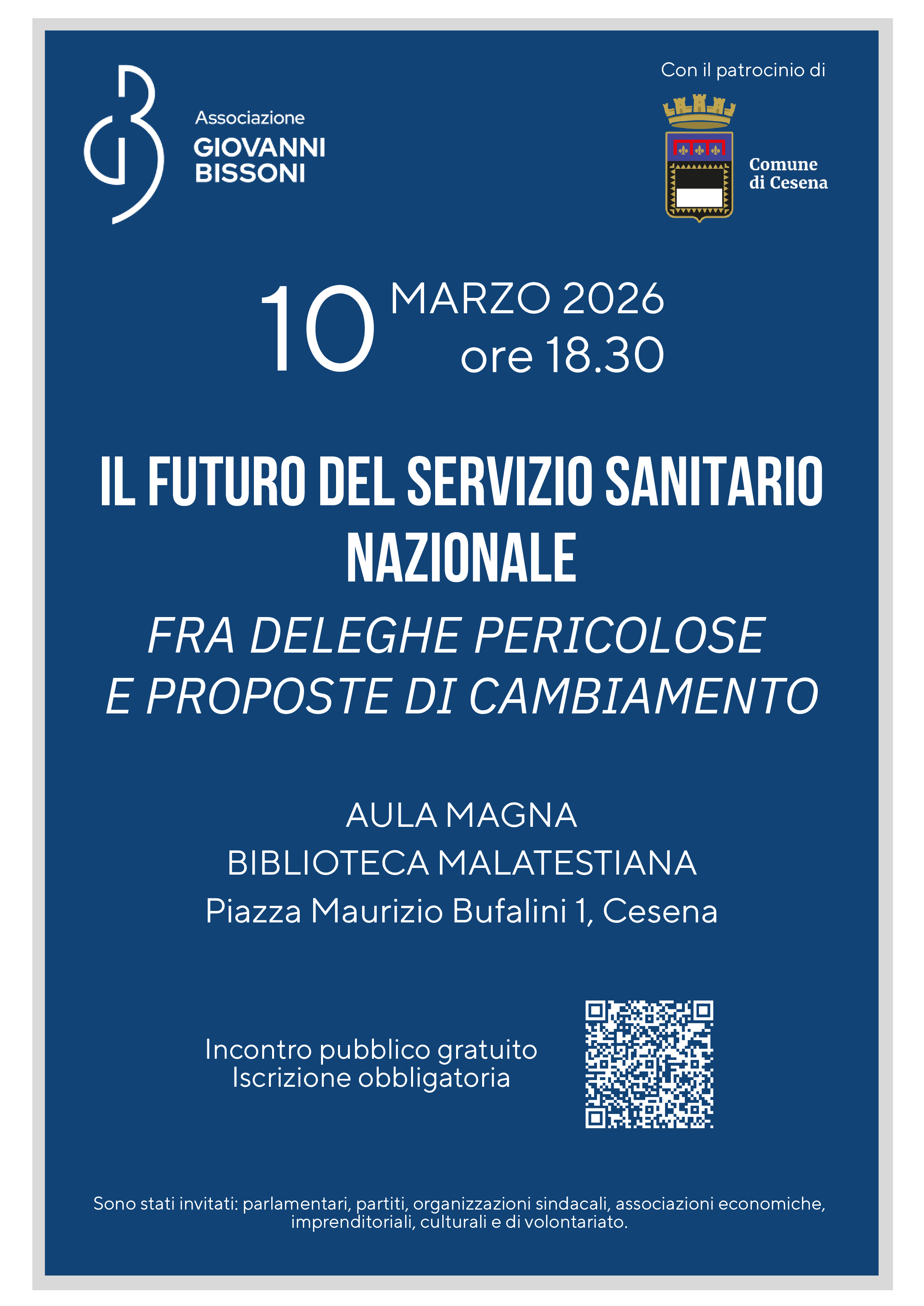 A cura dell’Associazione Giovanni Bissoni, martedì 10 marzo alle ore 18.30, nell'Aula Magna della Biblioteca Malatestiana di Cesena (Piazza Bufalini 1). Incontro pubblico gratuito, iscrizione obbligatoria.