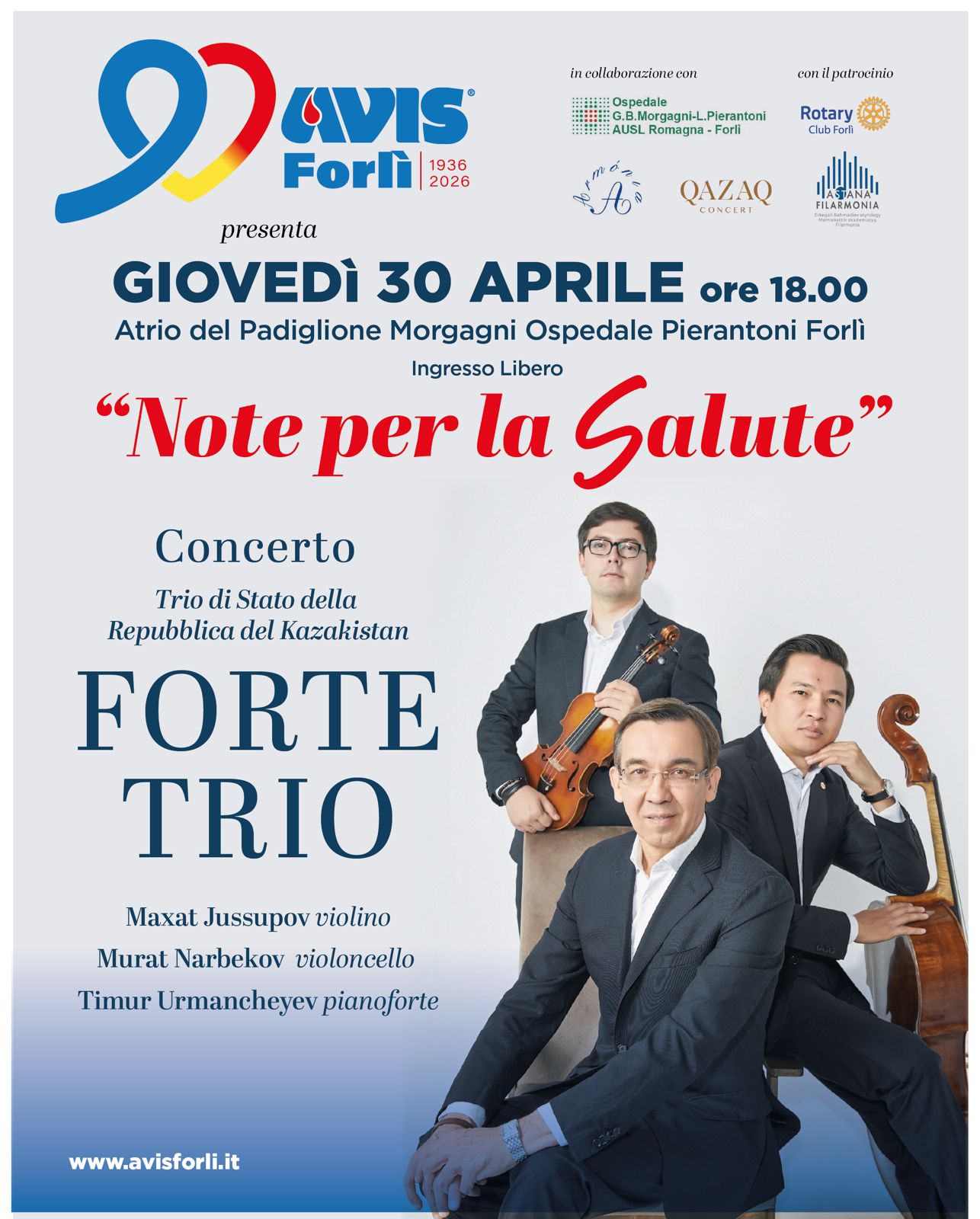 Tra le iniziative del 90° Anniversario di Avis Comunale Forlì nel 2026, un evento che unisce musica, volontariato e partecipazione cittadina nel concetto de “La Cultura che Cura” AVIS Comunale Forlì prosegue il percorso di iniziative dedicate al 90° anniversario della sua fondazione con un appuntamento che unisce musica, cultura e solidarietà. Giovedì 30 aprile alle ore 18.00, nell’atrio del Padiglione Morgagni dell’Ospedale "G.B. Morgagni - L. Pierantoni" di Forlì”, si terrà il concerto “Note per la Salute”, realizzato in collaborazione con l’Associazione Armònia.