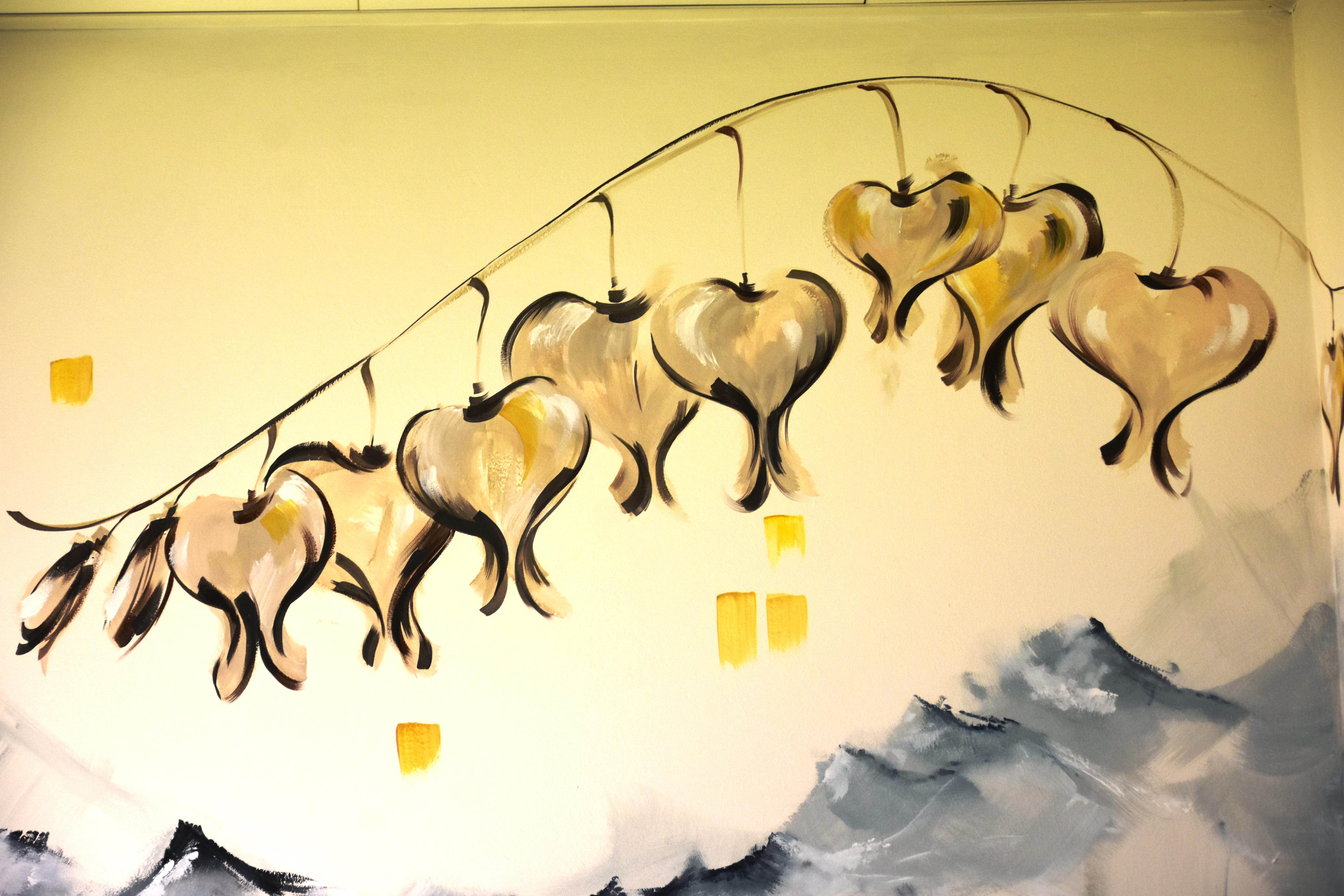 Un'opera artistica di Sara Liverani nelle pareti della sala di attesa della PET