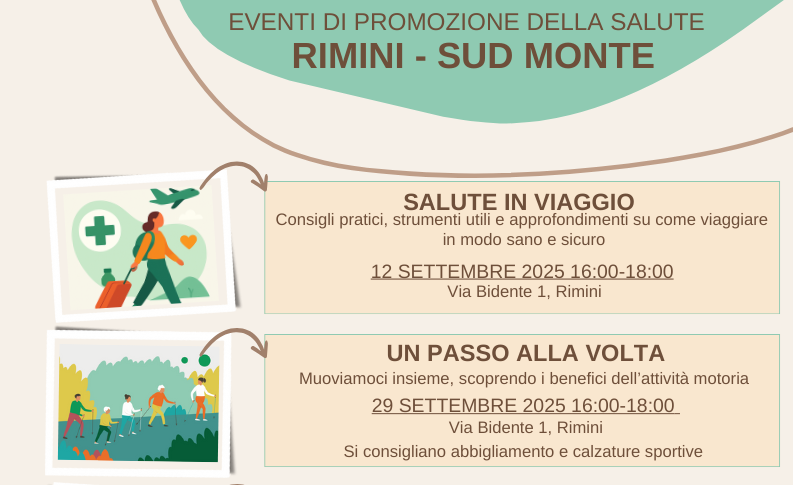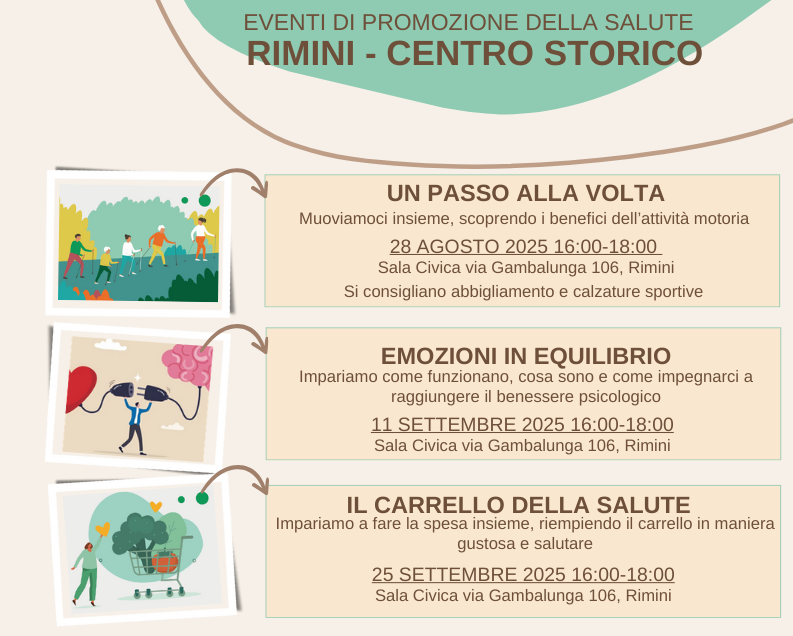 E’ un mese di settembre intenso, con un fitto calendario di incontri gratuiti, per le iniziative di promozione della salute organizzate nell’ambito del Piano Regionale della Prevenzione 2021-2025 dal Servizio Igiene e Sanità Pubblica – ambito territoriale di Rimini.