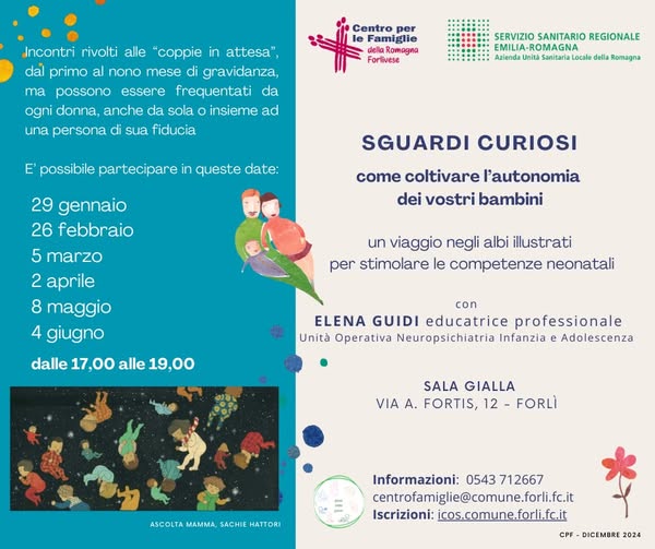 Le attivitร sono gratuite ma รจ prevista l'ISCRIZIONE su : Coppie in attesa - SGUARDI CURIOSI - Come coltivare l'autonomia dei vostri bambini - ICOS.Forli