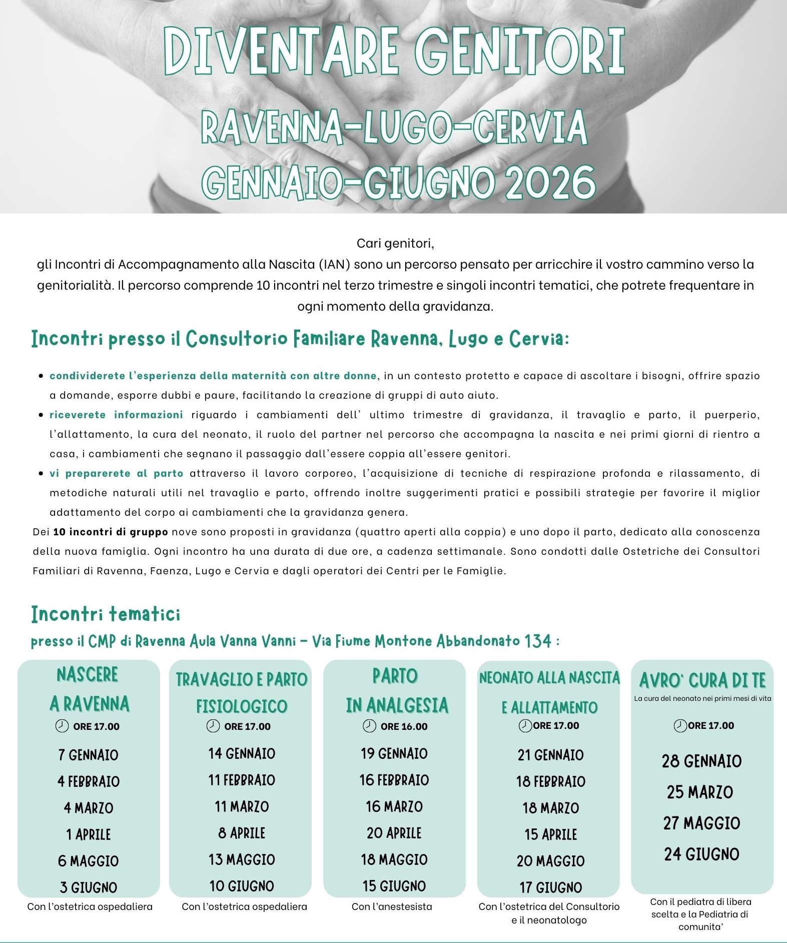 Calendario 2026 "Diventare Genitori" Ravenna, Lugo e Cervia