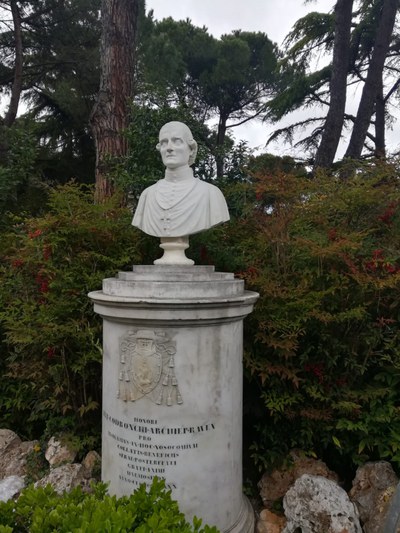 Entrando dall’ingresso di via Missiroli si può notare il busto del prelato Antonio Codronchi, originario di Imola che fu Arcivescovo di Ravenna dal 1785 al 1826, anno in cui morì.