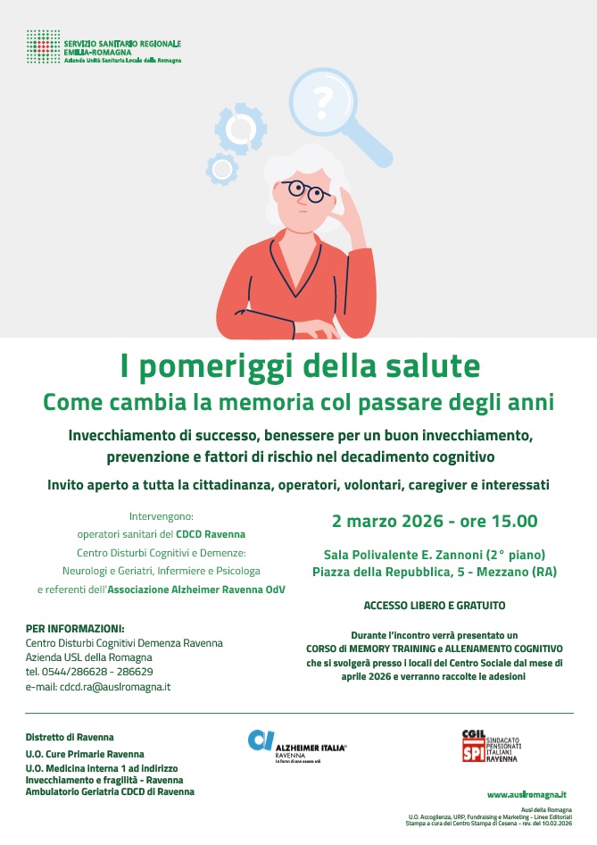 Durante l’incontro verrà presentato un CORSO di MEMORY TRAINING e ALLENAMENTO COGNITIVO che si svolgerà presso i locali del Centro Sociale dal mese di marzo 2026 e verranno raccolte le adesioni.