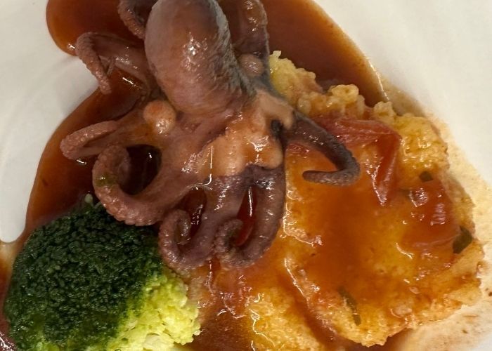 Polentina morbida con guazzetto di moscardini e broccoli saltati
