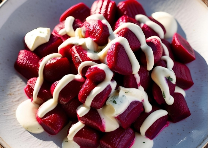 Gnocchetti di barbabietola su crema di parmigiano
