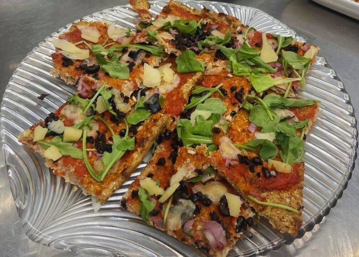 - Pulire il cavolfiore, tagliarlo a pezzetti e frullarlo in un robot da cucina finché non avrà una consistenza simile al riso. Frullare anche le noci fino ad ottenere una farina. Unire gli ingredienti in una ciotola, aggiungi uova, avena, origano e sale. Impastare il tutto fino ad ottenere un composto omogeneo, non sarà come l’impasto di una pizza tradizionale ma molto più umido.